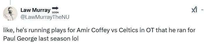 “比如,他在加时赛里给阿米尔-科菲所设计的战术,跟上赛季给保罗-乔治安排的如出一辙,哈哈哈。”